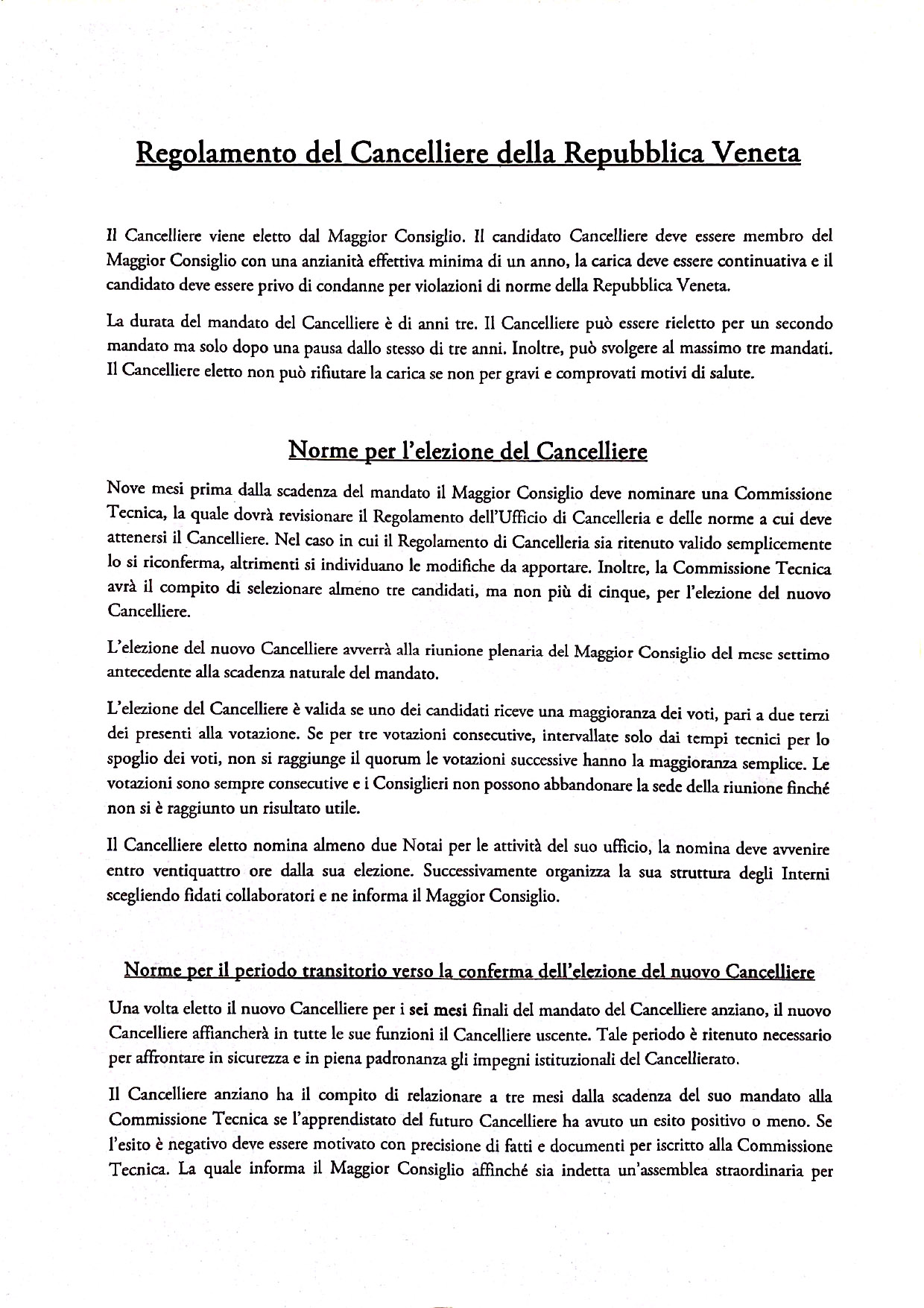 Regolamento del Cancelliere della Repubblica Veneta