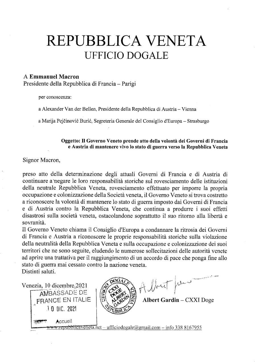 Breaking News: Consegnata all'Ambasciatore di Francia in Roma missiva diplomatica.