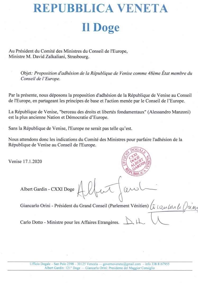 La Repubblica Veneta si propone quale 48° Stato del Consiglio d'Europa