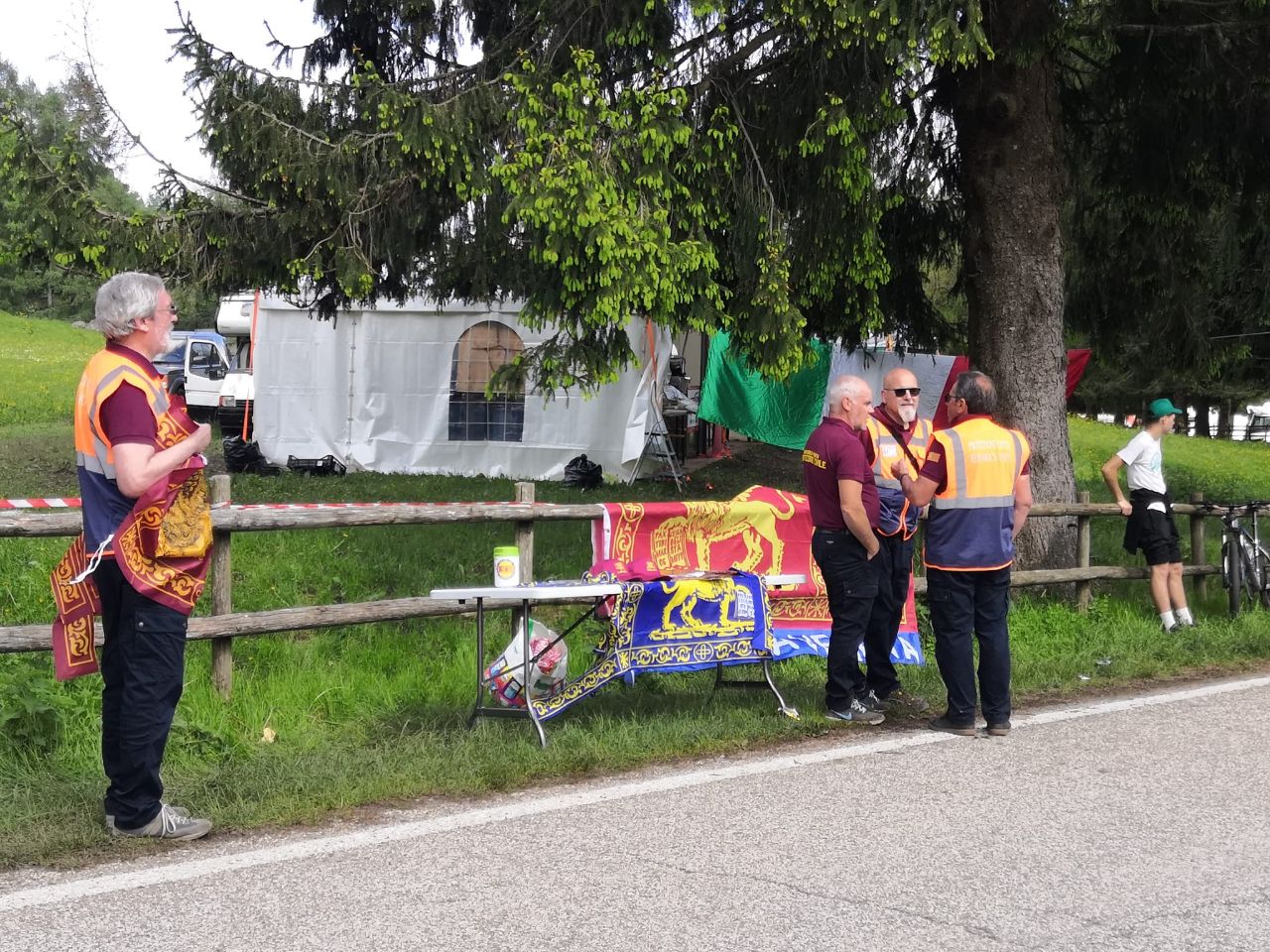 Già all’alba veniva preparata la postazione sulla piana antistante la malga, hanno dato il loro contributo alle attività di Protezione Civile anche alcuni rappresentanti all’interno del Maggior Consiglio, Il Cancelliere e il Camerlengo facente funzioni Dogali.