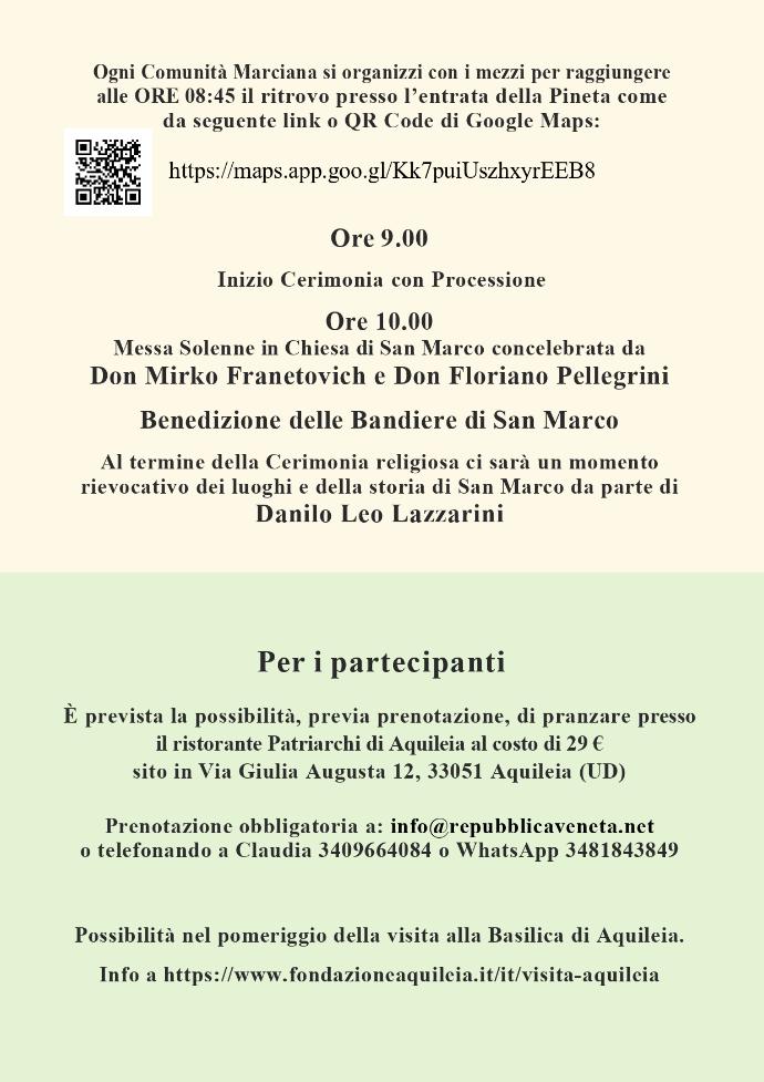 Festa nazionale del 25 aprile 2025 in onore all’evangelista Marco, Santo Patrono del Popolo Veneto, nei luoghi dove tutto ebbe inizio!