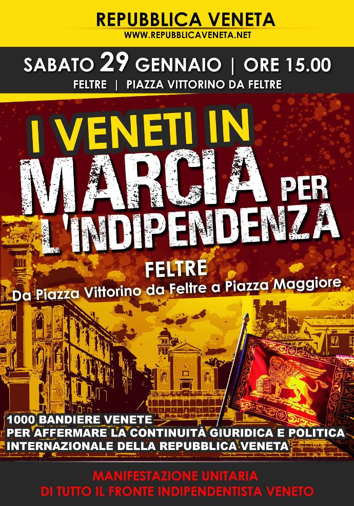 Il 29 gennaio 2022 (ore 15.00), a Feltre, i Veneti riprenderanno a marciare per dimostrare a se stessi e al mondo intero la loro determinazione a tornare liberi e indipendenti, e dunque a voltare pagina.